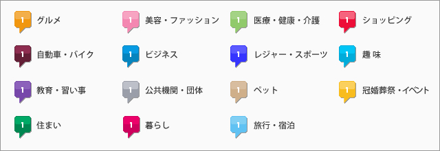 マップ上のアイコンは、カテゴリによって以下の色分けがされています。